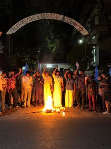 കള്ളക്കേസുകൾ ചുമത്തി എസ് എഫ് ഐ ക്കാർക്ക് വേണ്ടി എന്തും ചെയ്യുന്ന പോലീസ് സംവിധാനം ലോക്കപ്പ് മർദ്ദനങ്ങൾക്കൊപ്പം മനുഷ്യത്വ വിരുദ്ധ സമീപനം കൂടി സ്വീകരിക്കുകയാണെന്നും ഇത് പരിഷ്കൃത സമൂഹത്തിന് യോജിച്ചതല്ലെന്നും അദ്ദേഹം കുറ്റപ്പെടുത്തി.നഗരത്തിൽ പ്രകടനം നടത്തിയ കെ എസ് യു പ്രവർത്തകർ പാനൂർ പോലീസ് സ്റ്റേഷന് മുന്നിൽ മുഖ്യമന്ത്രി പിണറായി വിജയന്റെ കോലം കത്തിച്ചു.