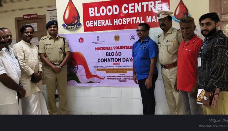 ഗവന്മെന്റ് ജനറൽ ഹോസ്പിറ്റൽ ബ്ലഡ് സെന്റർ മാഹിയും സംഘടിപ്പിച്ച ദേശീയ സന്നദ്ധ രക്തദാന ക്യാമ്പിൽ വച്ച്