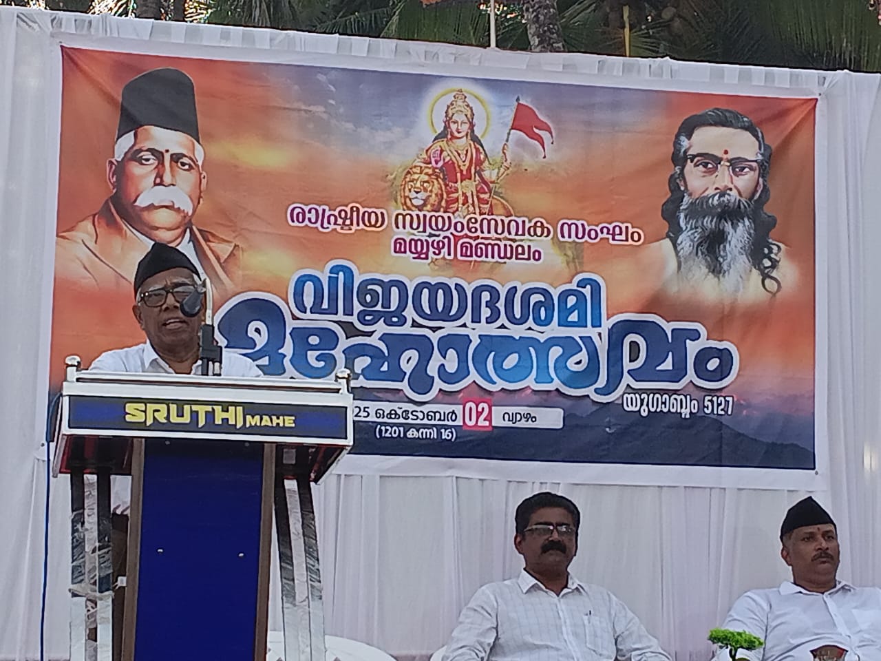 മാഹി : രാഷ്ട്രീയ സ്വയംസേവക സംഘത്തിൻ്റെ ശതാബ്ദി വർഷത്തിൽ ഏറ്റെടുത്തിട്ടുള്ളത് പഞ്ചപരിവർത്തനമെന്ന മഹത്തയ ആശയം സമൂഹത്തിൽ പ്രായോഗികമാക്കുകയെന്നതാണ്. നിരവധി പരിപാടികളാണ് ഇതിനായി ആസൂത്രണം ചെയ്തിട്ടുള്ളത്. പ്രവർത്തനവികാസം മുൻനിർത്തി കേരളത്തെ ഉത്തര- ദക്ഷിണ പ്രാന്തങ്ങളായി ഇപ്പോൾ വേർതിരിച്ചിട്ടുള്ളും ശ്രദ്ധേയമാണെന്ന് സംഘത്തിൻ്റ കണ്ണൂർ വിഭാഗ് സംഘചാലക് അഡ്വ. സി.കെ. ശ്രീനിവാസൻ പറഞ്ഞു. പള്ളൂരിൽ മാഹിമണ്ഡലം വിജയദശമി ആഘോഷത്തിൽ പങ്കെടുത്ത് സംസാരിക്കുകയായിരുന്നു അദ്ദേഹം.