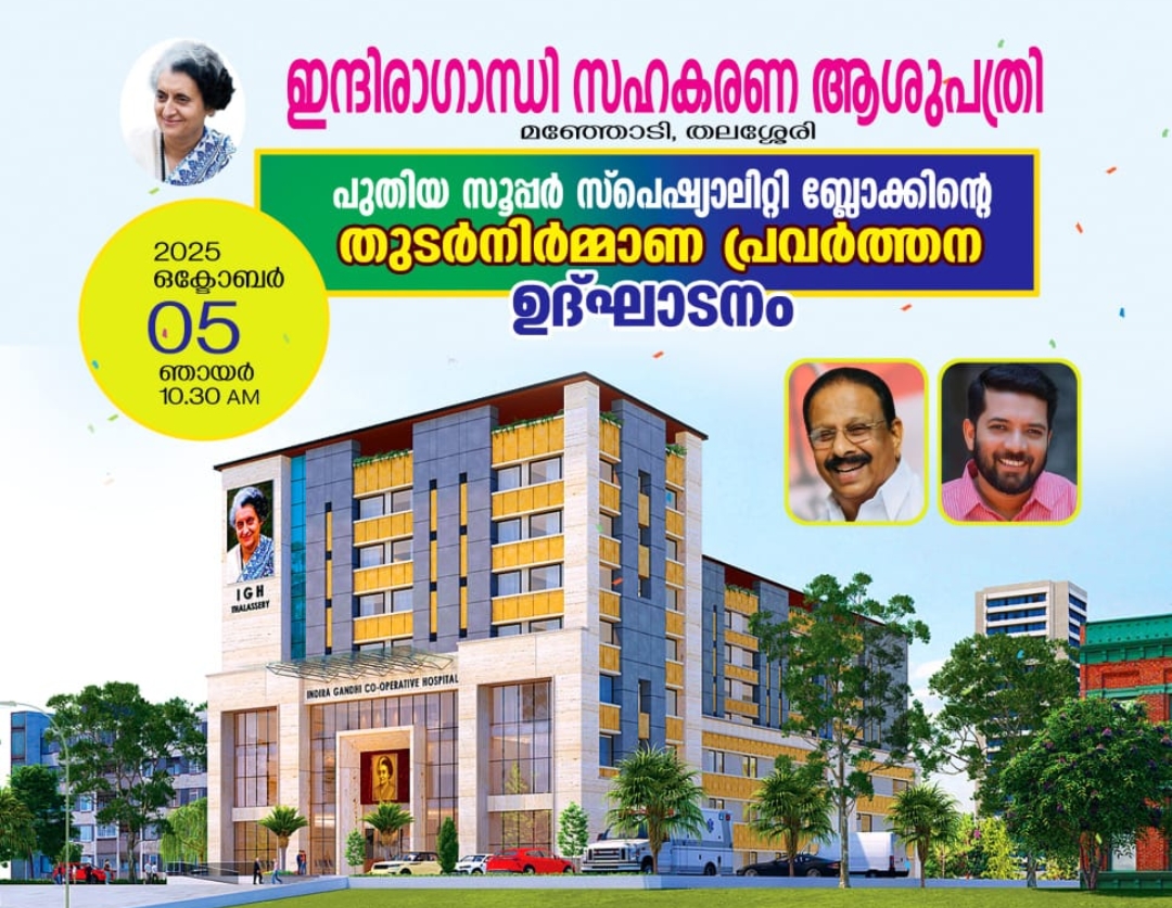തലശ്ശേരി : മഞ്ഞോടി ഇന്ദിരാഗാന്ധി സഹകരണ ആശുപത്രിയിൽ സൂപ്പർ സ്പെഷ്യാലിറ്റി കെട്ടിട