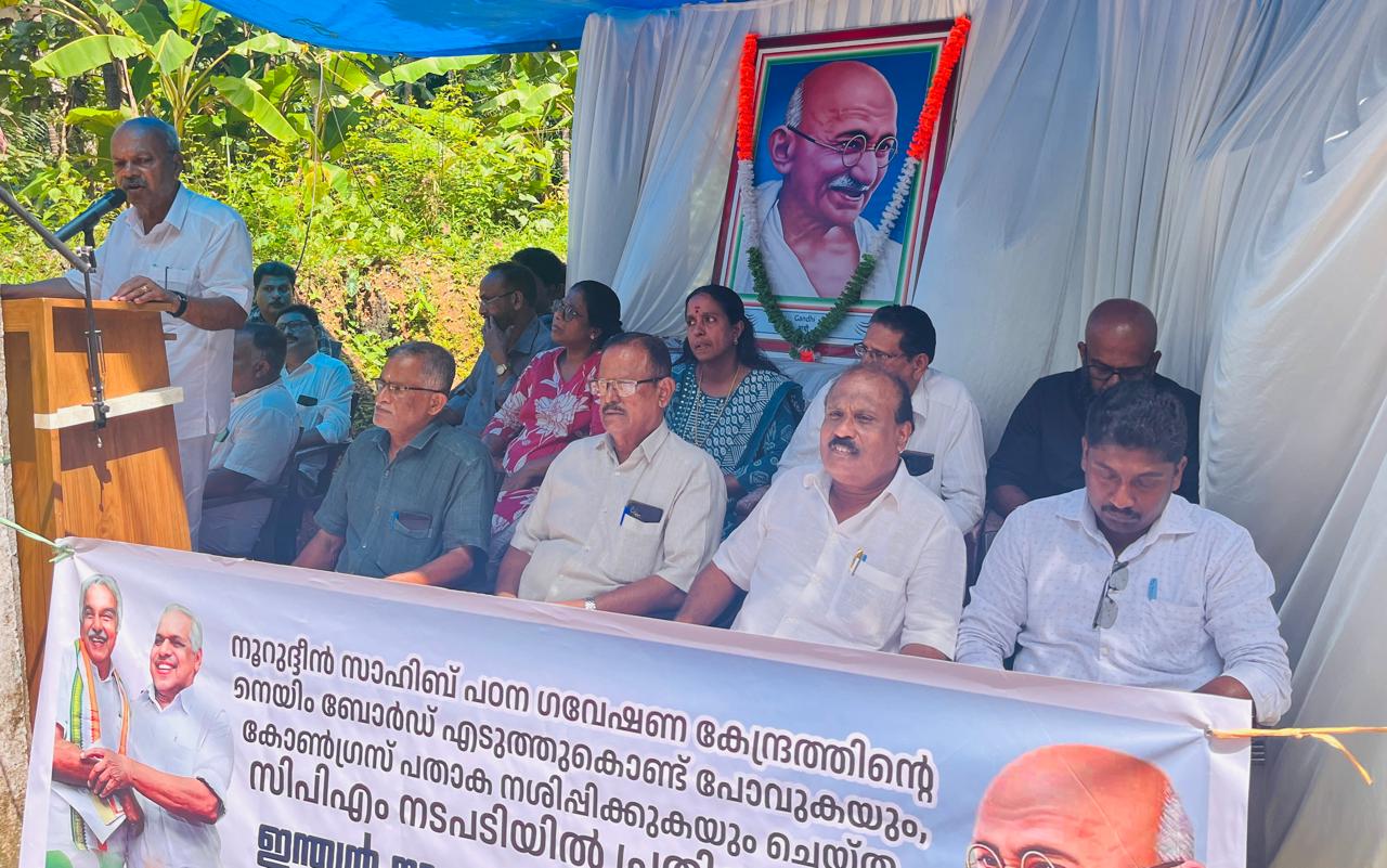 കണ്ണംവെള്ളി നൂറുദ്ദീൻ സാഹിബ് പഠന ഗവേഷണ കേന്ദ്രത്തിൻ്റെ നെയിം ബോർഡ് എടുത്തുകൊണ്ട് പോവുകയും, കോൺഗ്രസ് പതാകകൾ നശിപ്പിക്കുകയും ചെയ്ത സി. പി.എം നടപടിയിൽ പ്രതിഷേധിച്ച് ബൂത്ത് കോൺഗ്രസ് കമ്മിറ്റിയുടെ ആഭിമുഖ്യത്തിൽ കണ്ണംവെളളിയിൽ ബൂത്ത് കോൺഗ്രസ് കമ്മിറ്റി ഭാരവാഹികൾ ഉപവസിച്ചു . ഉപവാസസമരം കെ.പി.സി.സി മുൻ എക്സിക്യൂട്ടീവ് മെമ്പർ വി.സുരേന്ദ്രൻ മാസ്റ്റർ ഉൽഘാടനം ചെയ്തു. ഡി.സി.സി. ജനറൽ സെക്രട്ടറി സന്തോഷ് കണ്ണംവെളളി മുഖ്യ പ്രഭാഷണം നടത്തി. മണ്ഡലം പ്രസിഡൻ്റ് പി. സുരേഷ് ബാബു അധ്യക്ഷത വഹിച്ചു. കണ്ടോത്ത് ഗോപി , ഹരിദാസ് മൊകേരി, കെ.രമേശൻ,തേജസ് മുകുന്ദ്, കെ.പി.പ്രമീഷ്, രാജിത്ത് എ. കെ.എന്നിവർ പ്രസംഗിച്ചു. രാജൻ കല്ലുമ്മൽ , മനോജ് കുമാർ എൻ, കാർത്തികേയൻ വി പി, ടി. ഷിജു കുമാർ,സെൽമ ഷനോജ് എന്നിവർ നേതൃത്വം നൽകി.