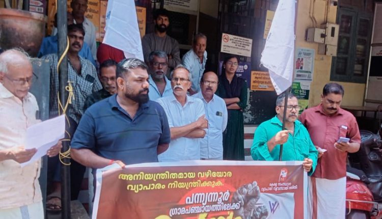 വർധിച്ചുവരുന്ന വഴിയോര വ്യാപാരം നിയന്ത്രിക്കണമെന്ന് ആവശ്യപ്പെട്ട് വ്യാപാരി വ്യവസായി സമിതി പന്ന്യന്നൂർ പഞ്ചായത്ത് ഓഫീസിലേക്ക് മാർച്ചും ധർണയും നടത്തി.
