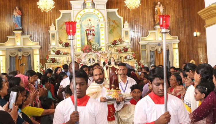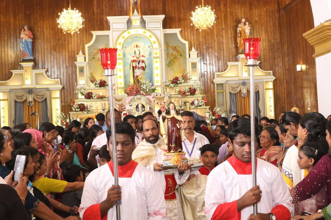 ദക്ഷിണ ഭാരതത്തിലെ പ്രഥമ തീർത്ഥാടന കേന്ദ്രമായ മാഹി ബസിലിക്കയിൽ വിശുദ്ധ അമ്മ ത്രേസ്യയുടെ തിരുന്നാൾ നാലാം ദിനത്തിൽ വൈകിട്ട് ആറുമണിക്ക്. റവ. ഫാ. മാർട്ടിൻ ഇലത്തി പറമ്പിലിൻ്റെ നേതൃത്വത്തിൽ ആഘോഷമായ ദിവ്യബലി അർപ്പിച്ചു. തുടർന്ന് നൊവേനയും പ്രദിക്ഷണവും ആരാധനയും ഉണ്ടായി.