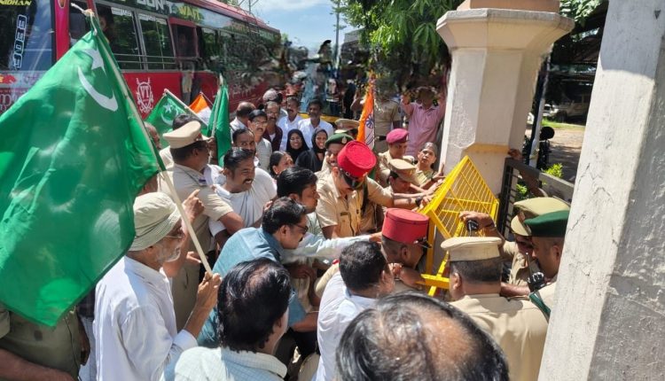 മയ്യഴി : മയ്യഴി നഗരസഭ മാലിന്യ നീക്കം നടക്കാത്തതിൽ യു.ഡി.എഫ് പ്രതിക്ഷേധം. മാഹിയിൽ കഴിഞ്ഞ മൂന്നു മാസത്തോളമായി മാലിന്യനീക്കം നടത്താത്ത മയ്യഴി ഭരണകൂടത്തിൻ്റെ നിരുത്തരവാദിത്വത്തിനെതിരെ മാഹി മേഖല യു.ഡി.എഫ് കമ്മിറ്റി മാഹി മുൻസിപാലിറ്റി ഓഫീസിലേക്ക് നടത്തിയ പ്രതിക്ഷേധ മാർച്ച് പോലീസ് തടഞ്ഞു. മാർച്ചിൻ്റെ ഉദ്ഘാടനം രമേശ് പറമ്പത്ത് എം.എൽ.എ നിർവ്വഹിച്ചു. യു.ഡി എഫ് ചെയർമാൻ എം.പി. അഹമ്മദ് ബഷീർ അദ്ധ്യക്ഷത വഹിച്ചു. പി.ടി.കെ.റഷീദ്, പി.പി.വിനോദ്, സത്യൻ കേളോത്ത്, കെ.ഹരീന്ദ്രൻ സംസാരിച്ചു. കെ.മോഹനൻ സ്വാഗതവും പി.പി.ആശാലത നന്ദിയും പറഞ്ഞു.