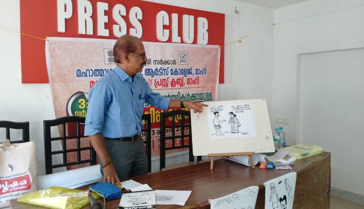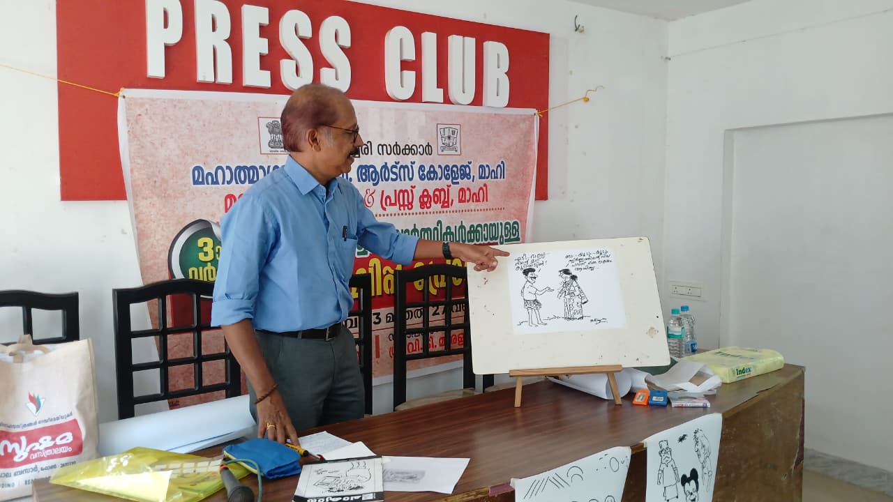 മാഹി : പ്രശസ്ത കാർട്ടൂണിസ്റ്റ് എം. അജയകുമാർ ക്യാൻവാസിൽ തൂലിക കൊണ്ട് നിമിഷ രചനകൾ നടത്തിയപ്പോൾ, അത് കാണികളെ ചിരിപ്പിക്കുകയും ചിന്തിപ്പിക്കുകയും ചെയ്തു.