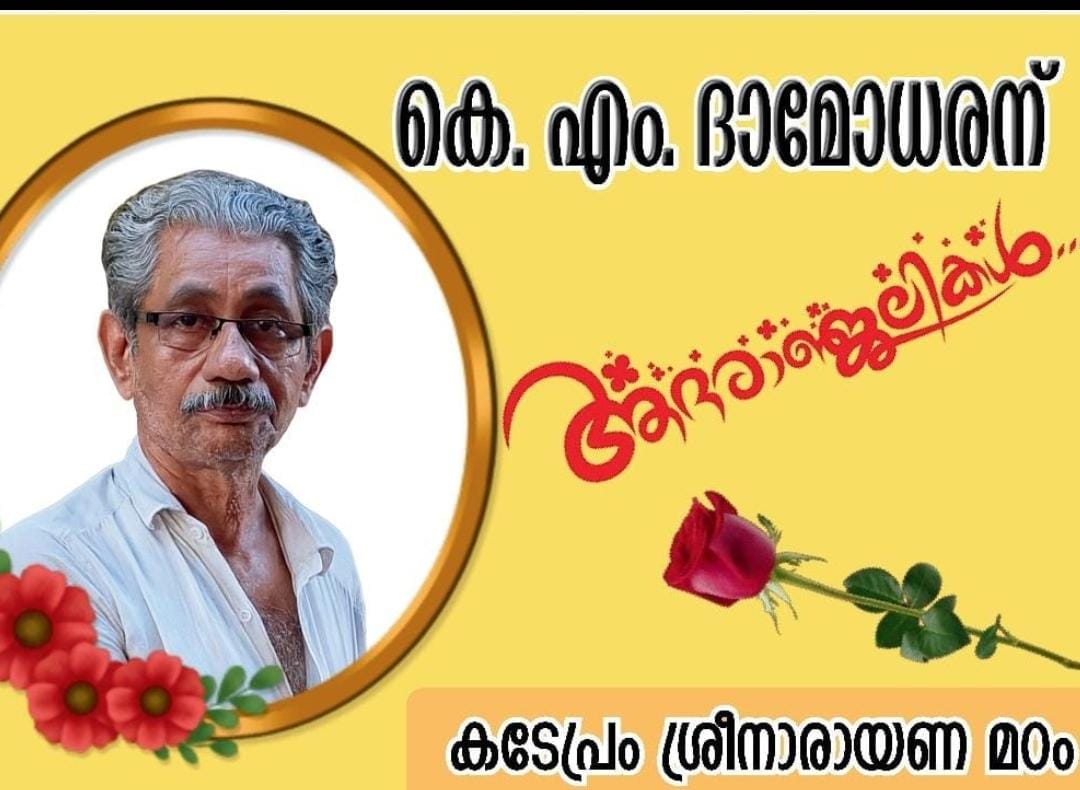 കടേപ്രം: കെ.എം.ദാമോദരൻ (68) മരണപ്പെട്ടു. കണ്ണോത്ത് മീത്തൽ പരേതരായ ഗോവിന്ദന്റെയും കുഞ്ഞിമന്ദി യുടെയും മകൻ കെ.എം.ദാമോദരൻ മരണപ്പെട്ടു. ഭാര്യ പ്രജല മക്കൾ: ജിഷ്ണു, നന്ദന സഹോദരങ്ങൾ: രേവതി, ഗൗരി, സുരേന്ദ്രൻ പരേതരായ ഹരിദാസൻ, മോഹനൻ ശവസംസ്കാരം ബുധനാഴ്ച കാലത്ത് 9 മണിക്ക് വീട്ടുവളപ്പിൽ.ബൂത്ത് കോൺഗ്രസ്സ് പ്രസിഡണ്ട്, മൊകേരി സർവ്വീസ് ബേങ്ക് ഡയറക്ടർ എന്നീ നിലകളിൽ പ്രവർത്തിച്ചിട്ടുണ്ട്