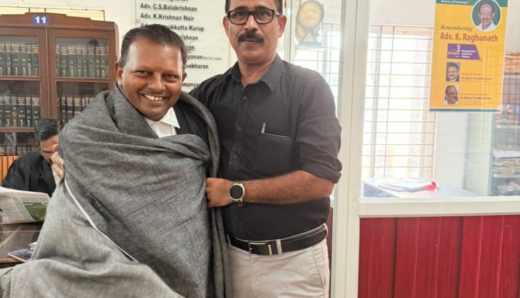 വടകര : അഭിഭാഷക മേഖലയിൽ മികവാർന്ന പ്രവർത്തനങ്ങൾ കാഴ്ചവെച്ചതിന് ഭാരത് സേവക് സമാജിന്റെ 2025 ലെ ദേശിയ അംഗീകാരം വടകര കോടതിയിലെ അഡ്വക്കേറ്റ് എ. എം സന്തേഷ് കുമാറിന്. അഴിയൂർ ഗ്രാമ പഞ്ചായത്ത് മുൻ സെക്രട്ടറി ഷാഹുൽ ഹമീദ് അദ്ദേഹത്തെ ആദരിച്ചു.