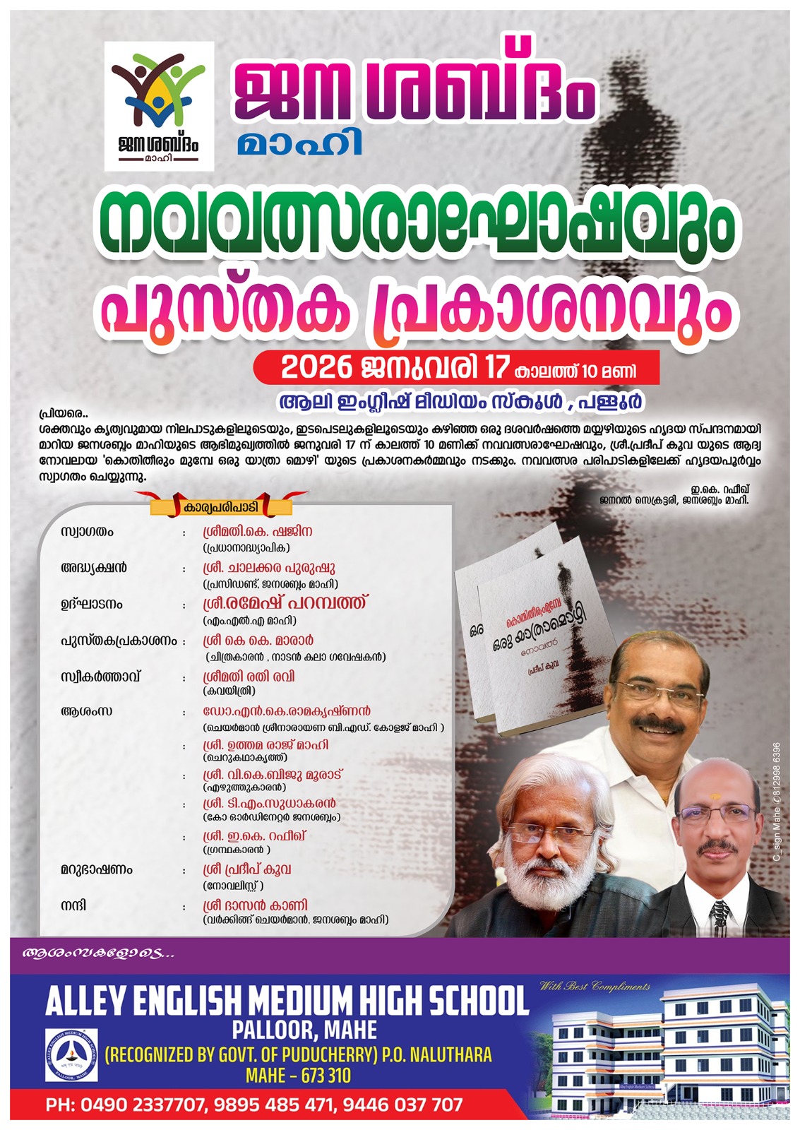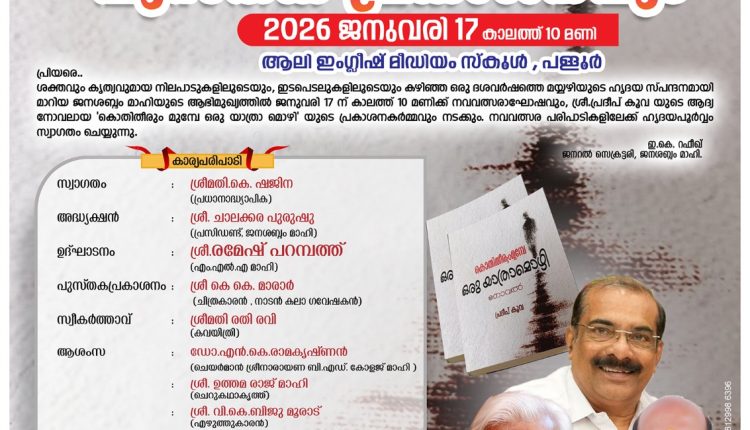 പുസ്തക പ്രകാശനവും ജനുവരി 17 ന് കാലത്ത് 10 മണിക്ക് പള്ളൂർ