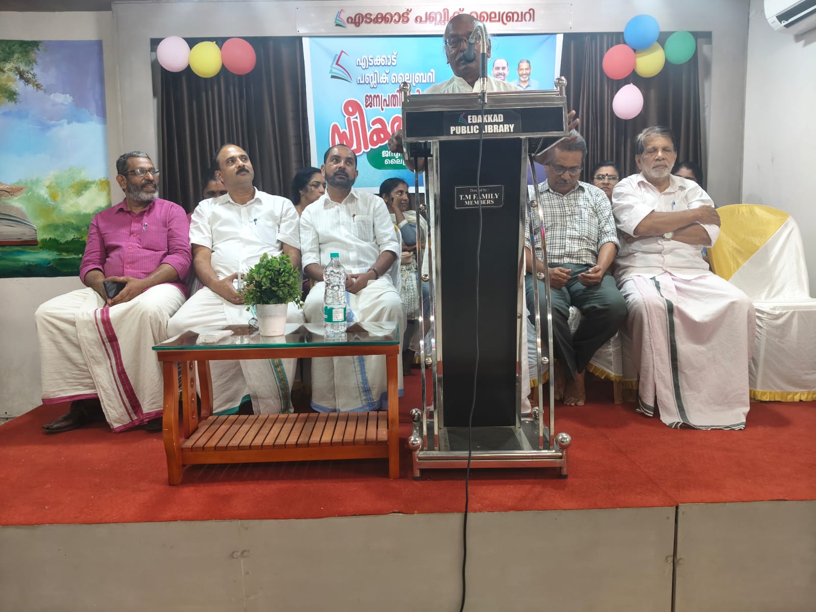 പ്രമുഖ സാഹിത്യകാരൻ ടി.കെ.ഡി മുഴപ്പിലങ്ങാട് ഉദ്ഘാടനം ചെയ്തു. ഡോ. എ വത്സലൻ അധ്യക്ഷത വഹിച്ചു. താലൂക്ക് ലൈബ്രറി കൗൺസിൽ മെമ്പർ കെ ശിവദാസൻ മാസ്റ്റർ, ജില്ലാ പഞ്ചായത്ത് പ്രസിഡന്റ് ബിനോയ് കുര്യൻ, ബ്ലോക്ക് പഞ്ചായത്ത് പ്രസിഡന്റ് കെ.വി ബിജു, ഗ്രാമപഞ്ചായത്ത് പ്രസിഡന്റ് കെ ഗിരീശൻ, ബ്ലോക്ക് മെമ്പർമാരായ കെ.വി ജയരാജൻ, ടി.സി അക്ഷയ, കെ.വി നിഷ, ഗ്രാമപഞ്ചായത്ത് സ്റ്റാന്റിങ് കമ്മിറ്റി ചെയർപേഴ്സൺ പ്രസീത പ്രേമരാജൻ, മെമ്പർമാരായ സി.പി ബാബു, സി.കെ ബാബുരാജ് എന്നിവർ സംസാരിച്ചു. എടക്കാട് പ്രദേശത്തെ വിവിധ വിഷയങ്ങൾ സംബന്ധിച്ച നിവേദനം ലൈബ്രറി സെക്രട്ടറി എം.കെ അബൂബക്കർ അവതരിപ്പിച്ചു. കമ്മിറ്റി പ്രസിഡന്റ് ടി.വി വിശ്വനാഥൻ മാസ്റ്റർ സ്വാഗതം പറഞ്ഞു. സ്വീകരണത്തിൽ സംബന്ധിച്ച 18 ജനപ്രതിനിധികൾക്ക് അനുമോദനോപഹാരമായി പുസ്തകവും ഭരണഘടനയുടെ ആമുഖം രേഖപ്പെടുത്തിയ ഫലകവും സമ്മാനിച്ചു.