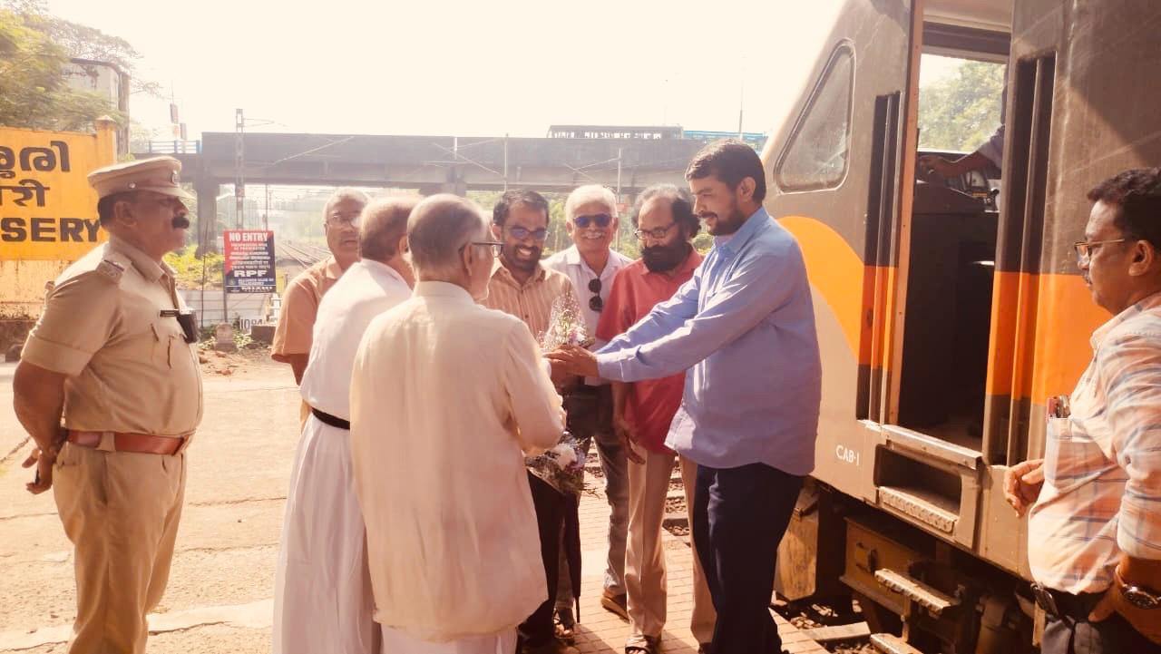 റവ:ഫാദർ.ഡോ.ജി.എസ്സ്.ഫ്രാൻസിസ്സ്,എ.പി. രവീന്ദ്രൻ എന്നിവർ ലോക്കോ പയലറ്റുമാർക്ക് ബൊക്കെ നൽകി സ്വീകരിച്ചു.ആർ.പി.എഫ്.സബ് ഇൻസ്പെക്ടർ കെ.വി മനോജ് കുമാർ, ഡോ.എൻ.സാജൻ,ഗിരീഷ് കുമാർ മക്രേരി,ശശികുമാർ കല്ലിഡുംബിൽ,അജയകുമാർ,വിക്ടർ തുടങ്ങിയവർ സ്വീകരണ ചടങ്ങിൽ പങ്കെടുത്തു.