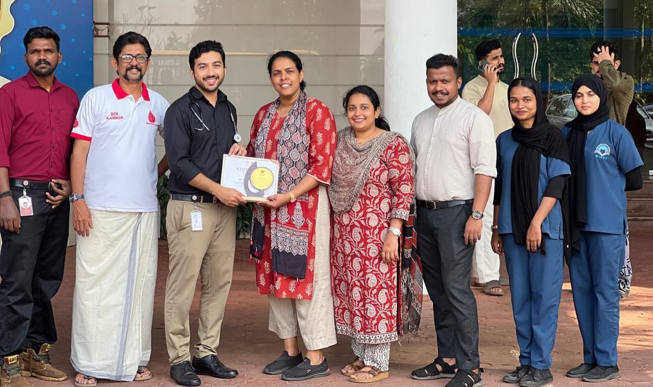 മാഹി: ബ്ലഡ് ഡോണേഴ്സ് കേരള തലശ്ശേരി താലൂക്കിന്റെ നേതൃത്വത്തിൽ കോഴിക്കോട് എം വി ആർ ക്യാൻസർ സെന്റർ ബ്ലഡ് സെന്ററിലേക്കാണ് രക്തദാന ക്യാമ്പ് സംഘടിപ്പിച്ചത്. ഡെന്റൽ കോളേജിൽ സംഘടിപ്പിക്കുന്ന ഏഴാമത് സന്നദ്ധ രക്തദാന ക്യാമ്പ്യാണ്. ക്യാമ്പിൽ വിദ്യാർത്ഥികളും പ്രഫസർമാരും ജീവനക്കാരും പങ്കെടുത്തു. നൂറോളം പേർ പങ്കെടുത്ത ക്യാമ്പിൽ 52 പേർ ജീവരക്തം പകർന്നു കോളേജിൽ വെച്ച് നടന്ന ക്യാമ്പ് കോളേജ് പ്രൊഫസറും എൻ എസ്.എസ് കോഡിനേറ്ററുമായ ഡോ: ടീനു തോമസിന്റെ അദ്ധ്യക്ഷതയിൽ കോളേജ് പ്രിൻസിപ്പൽ ഡോക്ടർ അനിൽ മേലത്ത് ഉദ്ഘാടനം ചെയ്തു. MVR കാൻസർ സെൻറർ ബ്ലഡ് സെൻറർ ഇൻ ചാർജ് ഡോ: ഹാരിസ്, ഡോ:അങ്കിത, ബ്ലഡ് ഡോണേഴ്സ് കേരള തലശ്ശേരി താലൂക്ക് പ്രസിഡണ്ട് പി പി റിയാസ് മാഹി എന്നിവർ ആശംസകൾ അറിയിച്ചു .ഡോ: റോഷി സ്വാഗതം പറഞ്ഞ പരിപാടിയിൽ MVR ബ്ലഡ് സെന്റർ കൗൺസിലർ അഭിജിത്ത് നന്ദി പറഞ്ഞു. ക്യാമ്പ് സർട്ടിഫിക്കറ്റ് ഡോ:ഹാരിസിൽ നിന്നും ഡോ: ടീനു തോമസ് ഏറ്റുവാങ്ങി. ബ്ലഡ് ഡോണേഴ്സ് കേരളയുടെ പ്രവർത്തനങ്ങൾക്ക് എന്നും കരുത്തായി ക്യാമ്പുകൾ സംഘടിപ്പിക്കുവാൻ മുന്നിൽ നിന്ന് പ്രവർത്തിക്കുന്ന ഡോ:ടീനു തോമസിന് ബ്ലഡ് ഡോണേഴ്സ് കേരള തലശ്ശേരിയുടെ സ്നേഹാദരം പി പി റിയാസ് കൈമാറി.*