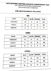 കേരളം പുരുഷൻമാരുടെ വിഭാഗത്തിൽ 182 ഉം സ്ത്രീകളുടെ വിഭാഗത്തിൽ 125 ഉം മെഡലുകൾ കരസ്ഥമാക്കി.