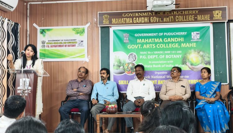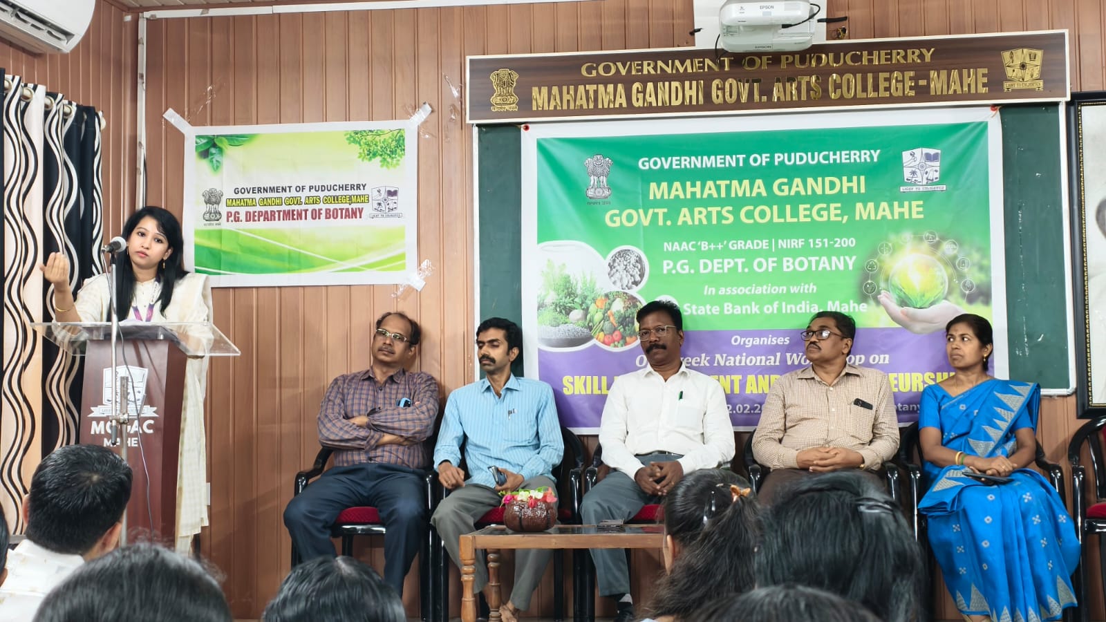 മയ്യഴി: മഹാത്മാ ഗാന്ധി ഗവണ്മെന്റ് ആർട്സ് കോളേജ് സസ്യ ശാസ്ത്ര വിഭാഗം എസ്.ബി.ഐ മാഹിയുടെ സഹകരണത്തോടെ നടത്തിയ സപ്ത ദിന നൈപുണ്യ വികസന ശില്പശാല സമാപിച്ചു. സമാപന സമ്മേളനം പ്രിൻസിപ്പൽ ഡോ. കെ.കെ. ശിവദാസന്റെ അധ്യക്ഷതയിൽ എസ്ബിഐ മാഹി ചീഫ് മാനേജർ ശരണ്യ വിജയൻ ഉദ്ഘാടനം നിർവഹിച്ചു. ഡോ. ഗിരീഷ് കുമാർ സ്വാഗതവും ഡോ. രാജേഷ് കുമാർ നന്ദിയും പറഞ്ഞു. ഷിജിത്ത് റിപ്പോർട്ട് അവതരിപ്പിച്ചു. ബോട്ടണി മേധാവി ഡോ. ജി പ്രദീപ്കുമാർ, ഹിന്ദി മേധാവി ഡോ. മഞ്ജുള എന്നിവർ സംസാരിച്ചു.